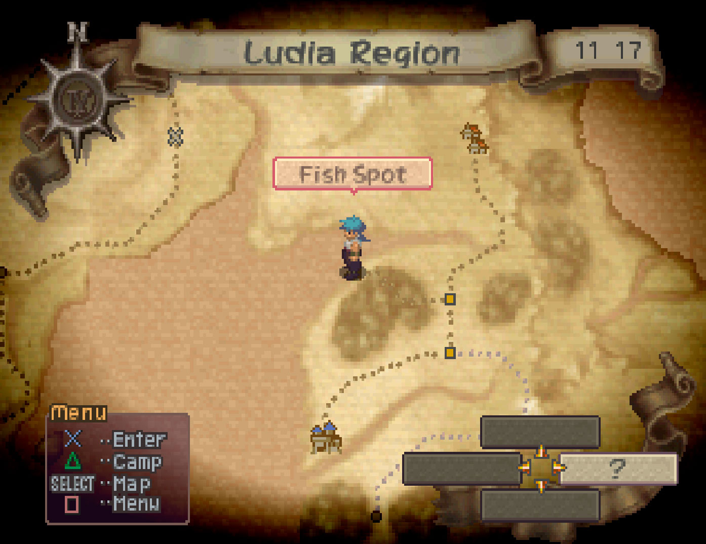 Plusieurs direction s’offrent à vous à partir de Ludia. Allez d’abord à l’intersection et prenez au nord en direction de Shyde. Arrêtez-vous au “?” sur le chemin et lisez le panneau dans la zone. Sortez alors en direction de l’ouest pour découvrir un nouveau point de pêche. Allez à présent jusqu’à Shyde, la petite ville au nord. Il n’y a presque rien à y faire, à part échanger votre Lead Ball obtenue au début du jeu contre Bronze Ball. Parlez à l’homme sous le préau, à côté de l’auberge pour effectuer l’échange. Revenez sur la carte du monde et prenez la direction de Wychwood, au sud de Ludia. A noter qu’il est possible d’apprendre la compétence “Double Blow” sur les NutTroop de la région.