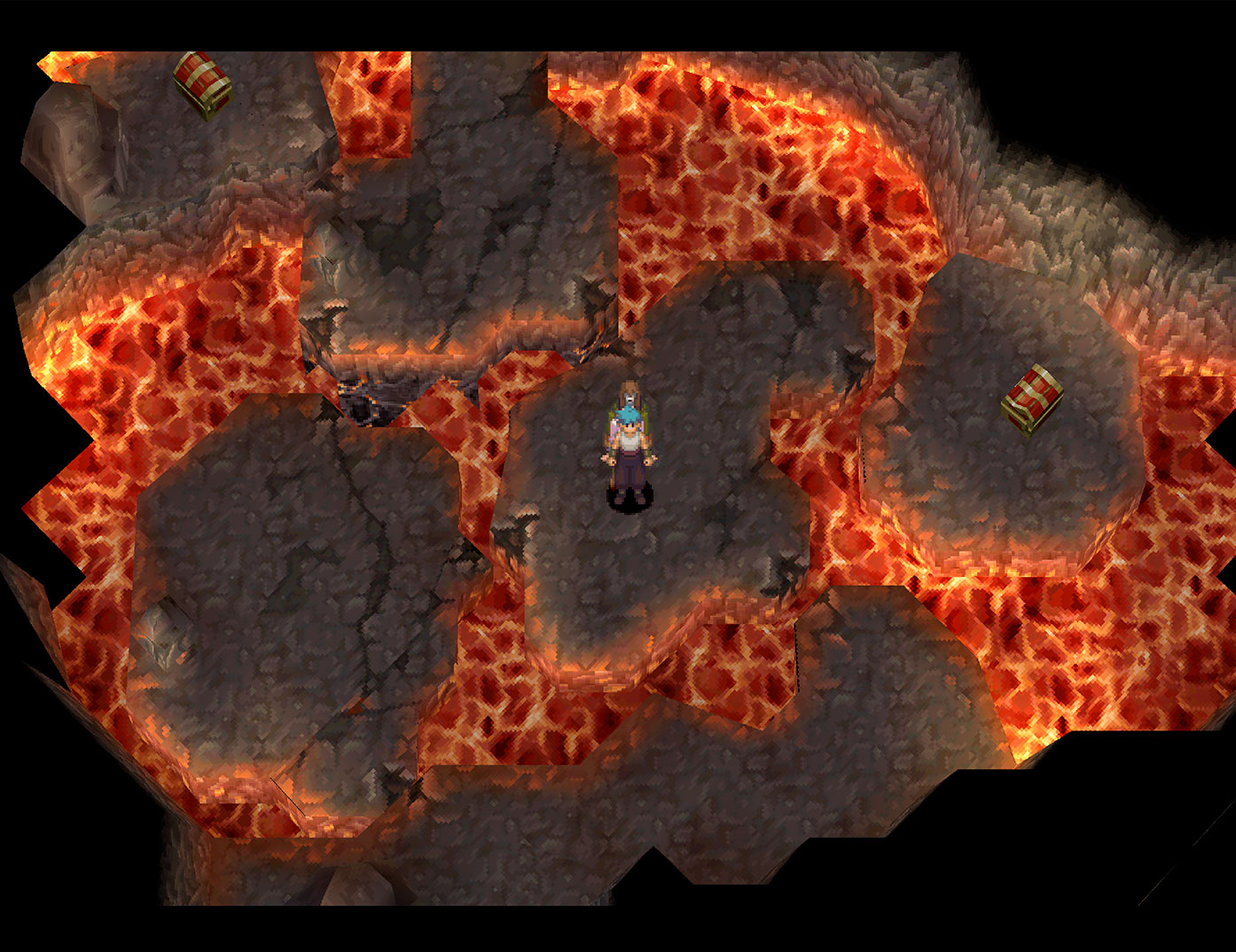 Utilisez des attaques à base de Feu sur les ennemis de ce lieu pour remporter plus de points d’expérience. Avancez à l’est et faites le saut au nord afin de trouver Fire Ward dans un petit sac. Passez la petite ouverture à l’est. Suivez le chemin et montez la petite pente pour entrer dans une nouvelle salle au nord. Dans cette pièce, les plateformes bougent après chaque combat. Approchez-vous de la plateforme centrale et engagez un combat afin de pouvoir récupérer 600 zenny dans le coffre. Provoquez un autre combat, puis encore un autre tout en restant sur la plateforme au nord afin de pouvoir atteindre le second coffre de la salle (Vitamin x2). Rendez-vous ensuite au nord-est de la salle pour atteindre une cavité à l’est. N’y allez pas tout de suite, et placez-vous sur la plateforme située au nord. Faites un combat ici afin d’atteindre une sortie à l’ouest. Faites un dernier combat sur la plateforme pour pouvoir sortir. Emparez-vous du coffre contenant Drill Punch, puis revenez dans la salle avec les plateformes. Cette fois, sortez à l’est (vous devez faire deux nouveaux combats pour atteindre la sortie). Suivez le chemin et entrez dans la maison. Après la petite scène, descendez l’échelle et allez chercher le coffre contenant Molotov x4 du côté ouest. Revenez à l’intérieur et sortez par le côté est pour revenir directement sur la carte du monde. Vous avez à présent accès directement à la maison du forgeron sur la carte du monde. Vous devez à présent vous rendre à Wychwood, les bois situés entre Ludia et Worent.