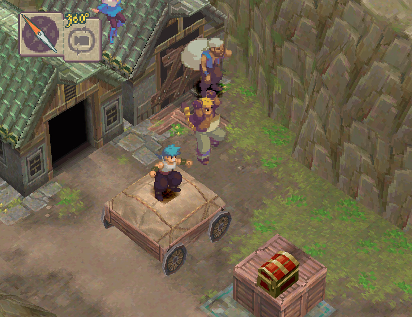 Entrez dans la grotte et suivez le chemin jusqu’à un croisement. Prenez le chemin menant à l’ouest afin de trouver un coffre contenant Rocket Punch dans un coffre après quelques sauts. Revenez sur vos pas et suivez le chemin le long de l’eau, puis tournez vers le sud afin de vous retrouver à l’extérieur. Approchez-vous du radeau et montez dessus. Contentez-vous de descendre la rivière en évitant de trop toucher les rives afin d’arriver en un seul morceau. Le mieux est de rester plus ou moins au centre de la rivière, sans trop chercher à ramasser les sacs. Sachez qu’il est possible d’obtenir Fish-head x3 dans le coffre situé à l’est lorsque votre radeau est détruit. Il vous suffit alors de recommencer la descente pour atteindre l’autre rive. Sortez pour atteindre la carte du monde.