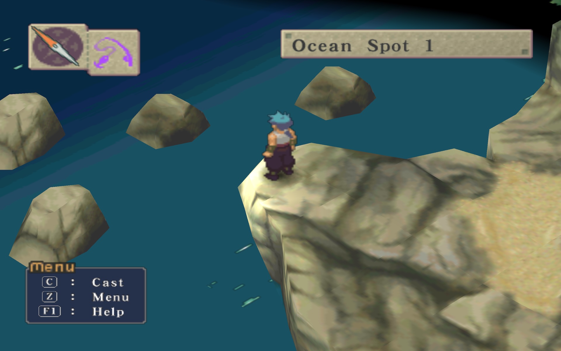1. Avant-proposTout d'abord, pourquoi pêcher ? L'avantage de la pêche, c'est qu'elle vous permet de récupérer des objets précieux sans dépenser de Zenny. Pour cela, vous avez besoin seulement d'une canne à pêche, de quelques appâts et d'un endroit où pêcher. Vous pouvez acheter un équipement de base dans la première ville (Sarai) et l'essayer dans le point de pêche le plus proche (voir la carte). Vous pourrez ensuite échanger vos poissons pêchés contre de nombreuses récompenses, tout au fil du jeu. Pour cela, consultez la liste des magasins Manillo. Chaque magasin propose ses propres échanges et peut réclamer des poissons plus ou moins rares, ou en plus ou moins grand nombre. Mais les poissons peuvent aussi servir durant les combats, certains étant utiles en tant qu'objets de soin consommables et d'autres d'objets offensifs, reproduisant l'effet de certaines magies. Enfin, ils peuvent également vous permettre d'acheter des équipements uniques et de bonne qualité, surtout à la fin du jeu. Pour les plus rares, il vous faudra effectuer de nombreux achats auprès de Manillo pour remplir un maximum de cartes de fidélité, et pouvoir ensuite les échanger contre les meilleurs équipements. Certains poissons peuvent être très difficiles à attraper et nécessiter les meilleures cannes, appâts et techniques de pêche. Consultez la liste des poissons pour connaître leur emplacement et les appâts recommandés. À chaque fois que vous entrez dans un lieu de pêche, un encadré vous donnera souvent un indice où chercher les poissons les plus rares (derrière les obstacles, dans la zone brumeuse, sous les branches, etc.). Si vous ne parvenez pas à ferrer de nouveaux poissons, tentez de pêcher aux endroits indiqués par le jeu. 2. Points de pêche
