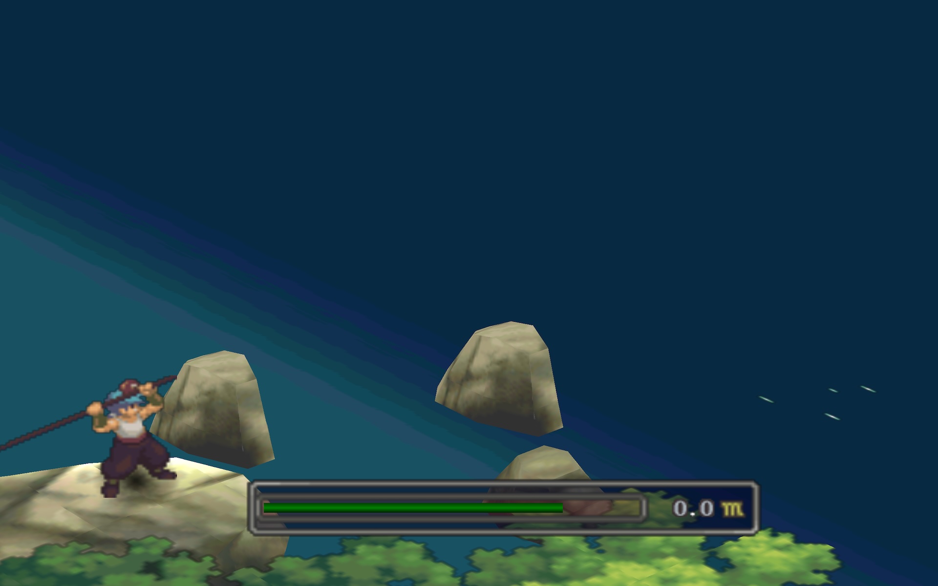 De plus, tout comme pour les cannes, chaque leurre existe en trois niveaux (sauf leurre ultime, 2 niveaux). Plus le niveau est élevé, plus les chances d'attraper un poisson rare le sont également. Évidemment, les leurres de niveau 3 sont plus difficiles à obtenir, la plupart étant achetés auprès de Manillo, il vous faudra donc pratiquer la pêche régulièrement. Enfin, les leurres de niveau peuvent théoriquement suffir à attraper tous types de poissons, mais il faudra pour cela une bonne dose de patience. Astuce : Achetez toujours les appâts en plusieurs exemplaires, vous n'êtes jamais à l'abri de le perdre. Si vous perdez votre appât équipé, vous devrez en équiper un autre avant de pouvoir relancer la ligne. ↑ Retour en haut de la page ↑4. Lancer la ligneApprochez-vous de l'eau à l'endroit souhaité, et lorsque l'icône clignote en rose, appuyez sur X une première fois pour sélectionner la direction, puis une nouvelle fois pour lancer la ligne. La jauge verte représente la distance à laquelle vous enverrez la ligne, puis appuyez à nouveau sur X pour valider. Attention selon l'endroit où vous pêchez (rivière) ou là où vous vous positionnez, il est possible que la distance maximum aille au-delà de l'espace disponible. Si vous lancez la ligne sur la terre, par exemple de l'autre côté de la rive, votre appât sera bloqué et il vous faudra alors appuyer très doucement jusqu'à le remettre à l'eau, sans casser la ligne. Si vous cassez la ligne, votre appât sera perdu. En revanche, si vous jetez l'appât en dehors de la zone de pêche (hors de l'écran), cela sera raté et vous pourrez relancer votre appât sans le perdre.