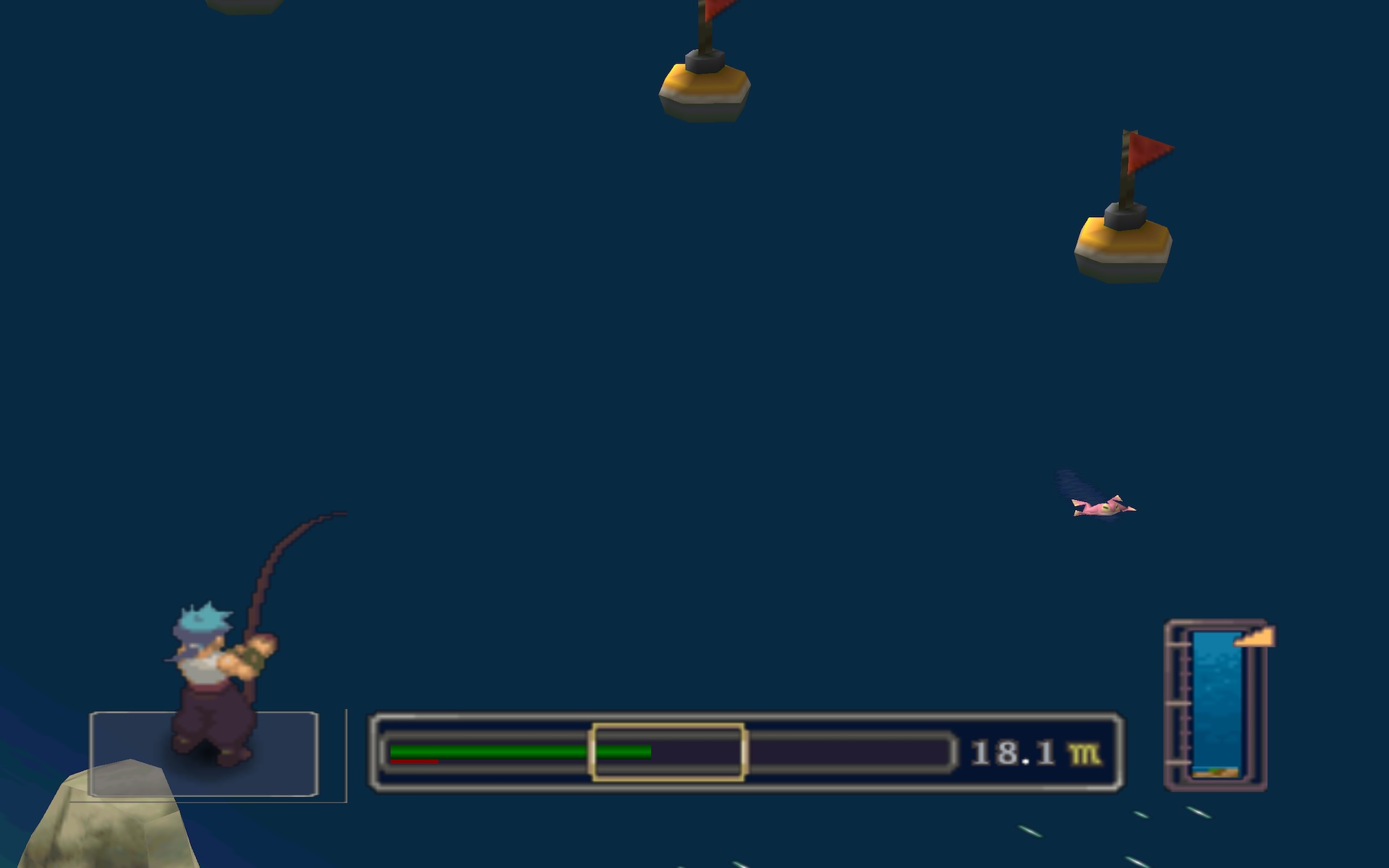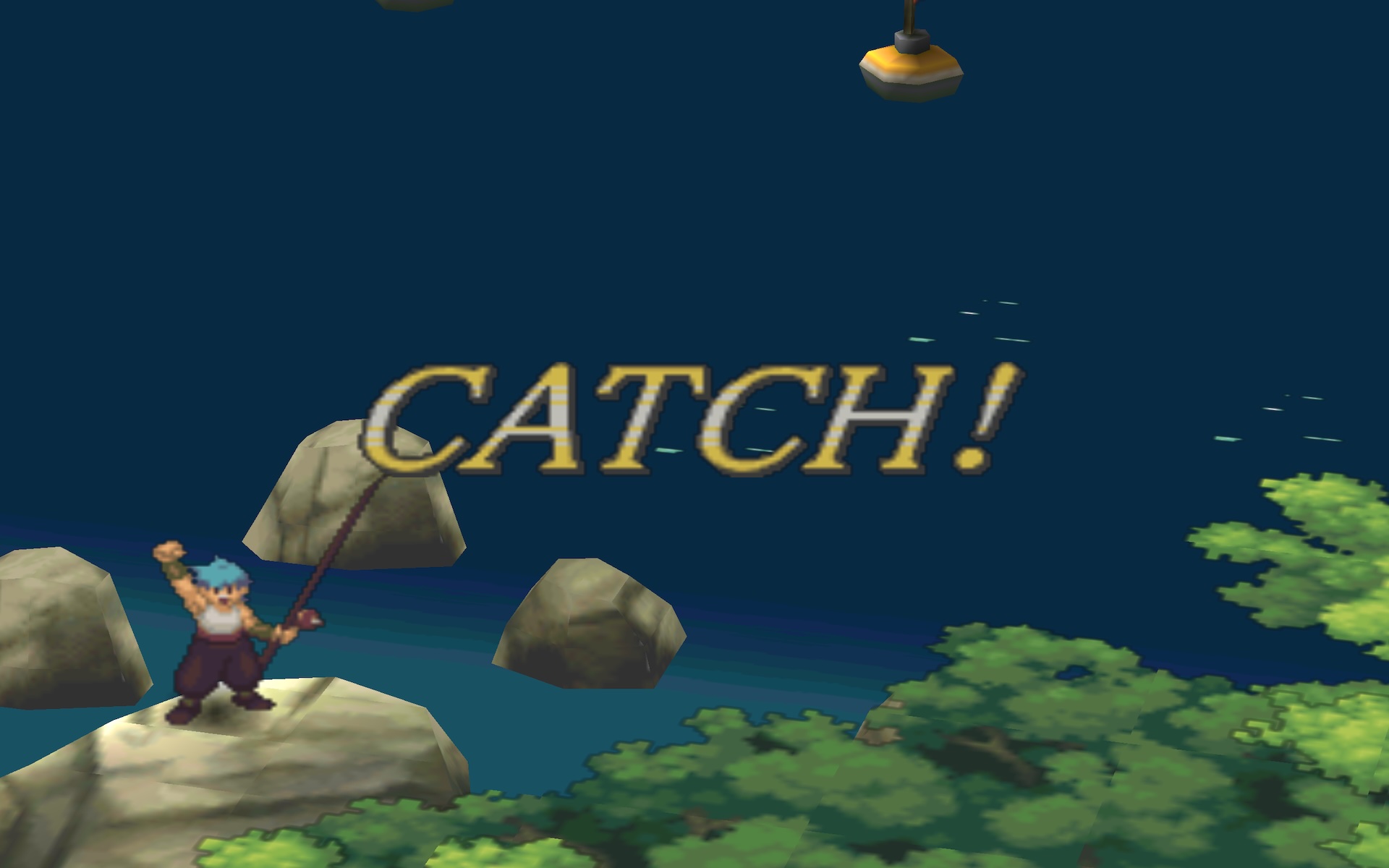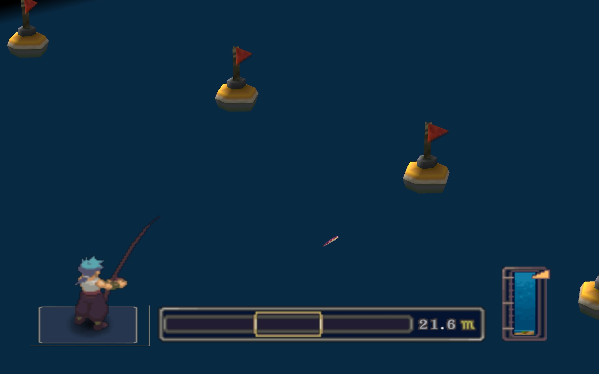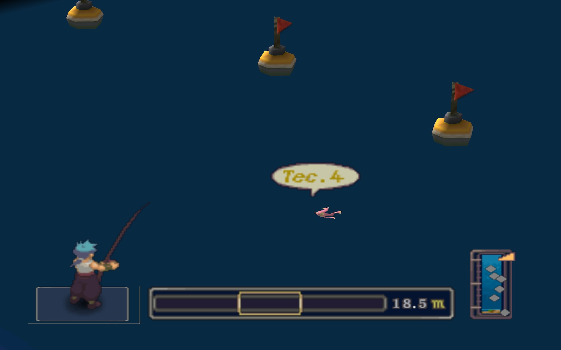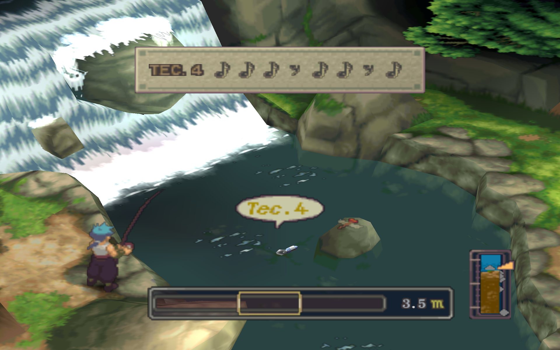6. Ferrer le poissonL'étape la plus courte mais la plus délicate. Lorsque vous sentez une légère vibration, que l'eau fait des remous et que la jauge verte de la canne s'active, appuyez une fois sur X ou déplacez l'appât et le poisson mordra à l'hameçon.