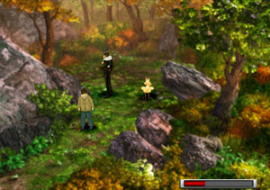 Cette forêt est juste à côté de la fac de Trabia. Ici, vous commencez avec deux chicobos d’entrée. Placez-vous à côté du premier chicobo, vérifez l'emplacement à l'aide du chocoSonar puis utilisez le chocoAimant. Revenez à l’entrée de la forêt et placez-vous comme sur l'image 1 pour utiliser à nouveau le chocoAimant. Parlez au chicobo qui arrive puis utilisez le chocoAimant à l’emplacement de l'image 2 pour que la maman déterre un Roc Cosse et un Roc Sacré.