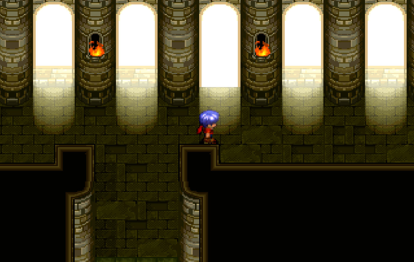 Avancez et placez-vous sur le portail rouge pour entrer dans le labyrinthe. Dirigez-vous vers le haut, puis prenez à droite. Suivez le chemin jusqu’à un nouveau portail. Prenez-le pour aboutir dans un long corridor. Allez sur la droite, et passez par la fenêtre ouverte. Sauvegardez, et continuez vers le haut. A la prochaine intersection, allez vers le bas et utilisez le portail. Passez dans la petite salle à droite afin de trouver un Duplicateur dans un coffre. Revenez et utilisez les trois portails suivants pour revenir au portail d’origine. Allez à gauche à l’intersection, et suivez le chemin jusqu’en bas jusqu’à un coffre contenant une Baie Potion. Revenez légèrement sur vos pas et prenez le chemin sur la gauche pour aboutir dans un cul-de-sac : vous pouvez néanmoins actionner un bouton qui n’apparaît que lorsque vous revenez de la salle du coffre. Revenez à l’intersection précédente, et allez vers le bas pour vous téléporter avec le portail. Utilisez le suivant, et cette fois, vous pourrez passer vers le bas.