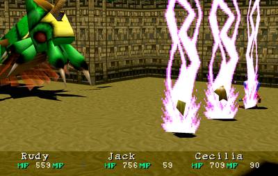 C’est un adversaire puissant qui pourra mettre à mal assez rapidement vos HP. Son attaque “Coup de tonnerre” notamment, pourra infliger au moins 300 points de dégâts à toute votre équipe. N’oubliez pas que vous pouvez soigner l’ensemble du groupe en utilisant l’Inspiration de Cecilia avec un objet de soin. Si vous le pouvez, baissez la défense de votre ennemi pour rendre les techniques de Rudy et Jack plus efficaces. Soignez-vous en cas de besoin avec Cecilia, laquelle pourra utiliser son Gardien lorsque l’occasion se présentera. Le sort Congélation de Cecilia fonctionne d’ailleurs plutôt bien.