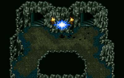 Vous obtenez l’armure Veste Cran pour Rudy. Revenez dans l’écran précédent, allez à toujours sur la droite pour vous retrouver dans une zone de lave. Descendez et allez à gauche à l’embranchement pour passer une ouverture et trouver un coffre bleu qui contient un Oeil. Remontez et passez devant l’Oeil dans le mur : cela vous indiquera si vous avez le bon objet (il clignotera en bleu). Si vous vous trompez d’Oeil, vous devrez d’abord remettre celui que vous avez en retournant au coffre où vous l’avez pris. Une fois le bon en poche, retournez alors à Malduke.