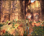 Avancez sans oublier de prendre le Ring Fragment dans le buisson de droite. Plus loin, vous aurez une scène avec Shania devant les deux totems. Ensuite, allez à gauche pour trouver un coffre (Talisman of Luck), puis examinez la peinture rupestre. Retournez vers les deux totems. On vous posera une question en rapport avec la peinture. La question change à chaque partie, mais il suffit de bien regarder la peinture pour répondre convenablement. En cas de mauvaise réponse, vous serez ramené au début de la vallée. Si vous répondez bien, vous pouvez continuer votre route dans la deuxième partie de la vallée.