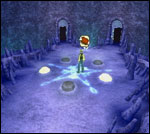 Allez à gauche et touchez le cristal rouge et vert. Allez à droite et manipulez le cristal vert et jaune. Passez sur le pont ainsi créé et allez à droite pour vous emparer du coffre (Cosmis Bracelet). Allez à gauche et actionnez le cristal rouge et vert. Le pilier va alors descendre avec Johnny. Allez un peu à gauche pour trouver Red Gravity sur le sol. Montez, allez à droite jusqu'à un coffre (Fruity Fiber). Retournez à gauche et actionnez le cristal blanc. Allez en bas, puis à droite. Déclenchez le cristal jaune et rouge, puis placez-vous sur le pilier rouge à droite pour actionner le cristal rouge et vert. Passez la porte et montez dans le corridor. Avant d'entrer dans la nouvelle salle, fouillez le coin (Hit Area Expand).