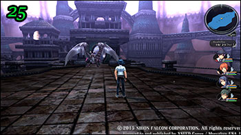 Profitez de la station de recharge, puis avancez et allez actionner le pilier sur la gauche. Ici il vous faut un personnage comme Jusis pour l’activer, et ainsi libérer le passage. Le pilier sur la droite requiert lui un personnage comme Machias pour être activé. Quoiqu’il en soit, passez maintenant au centre, et prenez le portail de droite en premier lieu. Allez ensuite à gauche. Attention au golem ici : ils possèdent de nombreux HP et donnent très peu d’expérience. Ici, allez à droite et montez l’échelle afin d’activer un nouveau pilier (avec Rean). Rebroussez chemin jusqu’au début de cette pièce, et suivez le parcours de droite jusqu’à un coffre, gardé par des monstres puissants. Il contient le quartz Chakravarti Gem. Montez l’échelle non loin de là et briser le cristal avec un personnage comme Machias. Vous pouvez maintenant aller au nord de cette pièce. Evitez le golem si possible et continuez au nord, et suivez le parcours jusqu’à un embranchement. Ici, prenez l’échelle à droite et cassez le cristal avec un personnage comme Rean. Redescendez et suivez l’autre chemin pour trouver un pilier à actionner avec Laura, par exemple. Ceci libère le passage principal, revenez donc sur vos pas et passez le portail ainsi ouvert. Vous voilà revenu dans la première salle de la zone. Passez le portail situé en face, suivez le parcours jusqu’à un embranchement. Ici, prenez le Zemurian Ore Shard près du golem (image 26), puis allez à droite pour monter à l’échelle. Continuez dans le couloir (EP Charge III), jusqu’à un cristal, à briser à l’aide d’un personnage comme Jusis. Rebroussez chemin jusqu’à l’embranchement avec le golem, et allez au nord. Montez l’échelle au bout du chemin, et brisez le dernier et quatrième cristal à l’aide de Laura. Vous libérez ainsi le passage vers la troisième zone. Emparez-vous des deux derniers coffres de la zone : Aeolus Gem et Celestial Balm EX avant de pénétrer dans la troisième et dernière zone.