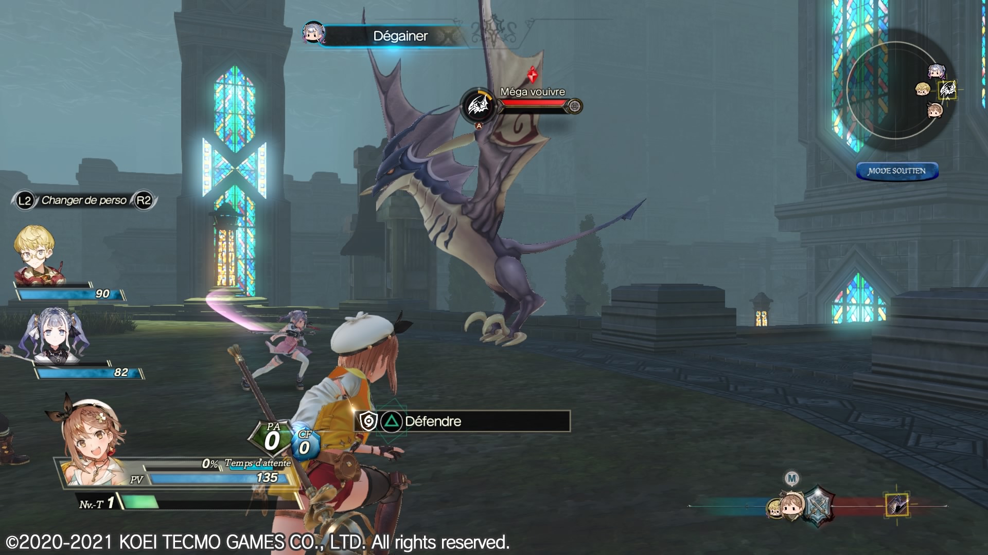 Jardin du mémorial (Tombeau de la Jeune Fille)Vous obtenez un tutoriel sur la liste de recherche, car la boussole ne marche pas immédiatement, il faut donc explorer les lieux. Vous avez une liste de recherche dans le journal d’exploration donnant des informations. En faisant certaines actions, cela remplit les champs de la liste, et la boussole s’active une fois qu’ils sont tous réussis. Ashra-am BairdAvant de vous lancer dans l’exploration, il peut être bien de rentrer pour sauvegarder et faire des rapports de quêtes, et prendre d’autres requêtes. Vous pouvez avoir quelques événements à voir, comme Ville du client, Assistance médicale, Fermières. Vous pouvez aussi prendre quelques compétences (apprendre la recette du filet peut être un atout pour collecter des insectes). Avec le Filet, vous pouvez attraper dragon bombe (herbe sèche) dans la Vallée de Windmuhle ou la Grand-route de Meeresbrise. Il est conseillé aussi de vous faire vos propres équipements, qui seront nettement supérieurs à ceux fournis de base, qui vous donneront plus d’aisance pour les prochaines batailles à venir. Pensez aussi à bien mettre des objets fondamentaux à tous les personnages, aussi bien de soin que d’attaque. Dans ce donjon, tous les ennemis sont nouveaux (nv 13 - 24). Vous trouvez aussi de nouveaux matériaux : fruit rouge frais (vase), tonique Roteswasser (vase), verre émeraude (cristaux violets), isopode spirituel (fleurs cimetière), fleur de requiem vierge (fleurs cimetière), ver d’expiation (statue), vigne coriace (faucille sur statue) Avancez jusqu’à avoir une scène. Faites quelques pas pour une seconde cinématique. De là, allez à l’est, pour trouver dans la zone du cimetière, un coffre détenant le collier d’énergie (qui fait partie de la liste de recherches 10% atteint). Ramassez les objets autour des tombes pour avoir fleur de requiem vierge (deuxième recherche de la liste 20% atteint). Il est temps d’aller dans la partie ouest. Après la scène, Patricia rejoint le groupe. Ouvrez le coffre pour trouver Médaillon de la dévotion (liste de recherche 30% atteint). Prenez le chemin menant à un second cimetière au sud-ouest pour atteindre un autre coffre, qui renferme merveille mystique (liste de recherche 40% atteint). Revenez au carrefour précédent et prenez au nord. Une méga vouivre vous tombe dessus (nv20). Elle est faible à la glace (si jamais vous avez des bombes de cet élément). Sinon, usez des ordres pour l’affaiblir au feu et lui lancer vos magies de cet élément avec votre trio.