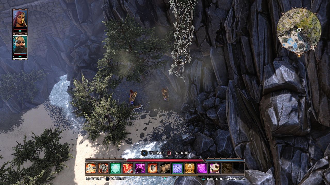 Si vous venez du point de passage Marais Exsangues - Plage du Dragon, vous pouvez également rejoindre rapidement cet endroit en longeant la falaise vers l'ouest, où se trouve du lierre à escalader. Allez jusqu'à une porte en fer, vous croiserez aussi un aventurier mort possédant un journal à lire (quête « La faim de l'au-delà ») et une gargouille vous parlera. Elle vous laissera passer mais vous mettra néanmoins en garde (quête « Le Labyrinthe de la gargouille »). En effet, il y a de nombreuses portes à traverser, mais elles ne peuvent pas être crochetées, et seul un objet (une âme) peut les ouvrir ; or, il n'y a pas assez d'âmes pour ouvrir toutes les portes. Vous l'aurez compris, il vous faudra réussir à atteindre l'autre côté par le chemin le plus court possible. Cela dit, il est tout à fait possible de se téléporter de l'autre côté d'un mur ou d'une porte. D'ailleurs, il est plus facile d'utiliser une compétence où le lanceur se téléporte lui-même (Repli stratégique, Jeux d'ombres, ou bien encore Ailes déployées qui débloque la compétence Vol), à moins de posséder Téléportation sur deux personnages qui pourront se téléporter mutuellement.