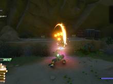 Au Mont Olympe - Sommet, avancez et laissez-vous tomber dans le passage à gauche. Le coffre en bas détient une Fluorine (11/32). Continuez de grimper (pensez à détruire le panier de fruits pour des Poires). La route est bloquée par un tas de gravats. Tapez dessus pour vous ouvrir la voie. Un point de sauvegarde se trouve juste derrière.