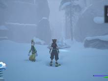 Après la chute, vous voilà dans La Montagne du Nord - Friche enneigée, où un point de sauvegarde vous attend. Avancez jusqu'à tomber d'une falaise. Montez la paroi, prenez des Groseilles à l'arbuste et en haut, retournez-vous. Sautez en face pour rejoindre un coffre détenant un Anneau vigoureux (6/25). Revenez en bas et poursuivez la descente. À la deuxième chute, visez le gros tas de neige à gauche et explosez-le avec la commande. Vous dévoilez un coffre renfermant un Orichalque (9/25). Avancez à deux reprises pour des scènes. Avec votre nouvel allié, combattez la horde d'ennemis. Dans cette zone, allez tout au nord dans le coin, derrière le rocher se trouve un coffre. Vous obtenez le jeu du Royaume Classique : Mickey et les chatons (7/25). Vous avez une Boutique Mog et point de sauvegarde à La Montagne du Nord - Contreforts. Dans les caisses, vous pouvez obtenir une Gemme nébuleuse. Avancez pour une scène. Ensuite, il faut passer à travers la tempête de neige, en se mettant à l'abri derrière les rochers quand le vent souffle fort. Bien qu'un coffre soit en haut d'un rocher à gauche, il est impossible de sauter, il faudra revenir plus tard. Quand vous approchez de Guimauve, mettez-vous à l'abri derrière le rocher, juste devant lui, à droite. Il y a un coffre offrant un Acier damas (25/25). Rejoignez-le pour une cinématique.