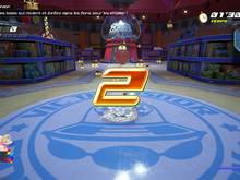 Montez les marches juste derrière lui, pour trouver deux cerises sur une couronne. Un flan à la cerise vous lance un défi de trio-luge, où il faut utiliser les flèches pour prendre de la vitesse et foncez sur autant de flans possible en 1 minute 30. Evitez de vous cogner au risque de ralentir. Une fois aligné sur une flèche ne touchez plus à la direction pour éviter de partir dans tous les sens. La seule astuce que j'ai trouvé, est de prendre tout droit au premier croisement et éviter d'aller à droite. Cela mène dans un chemin avec plusieurs flans, permettant d'arriver une fois sur la grande place, de finir l'enchaînement. Avec un peu d'entraînement, c'est jouable, mais c'est vraiment pas évident à gérer au début.