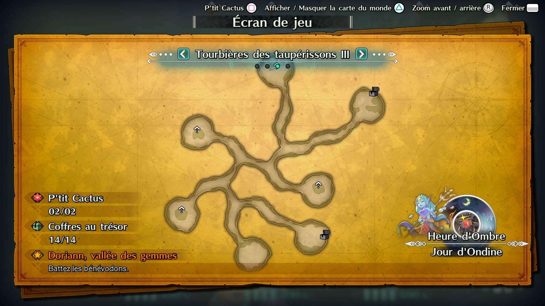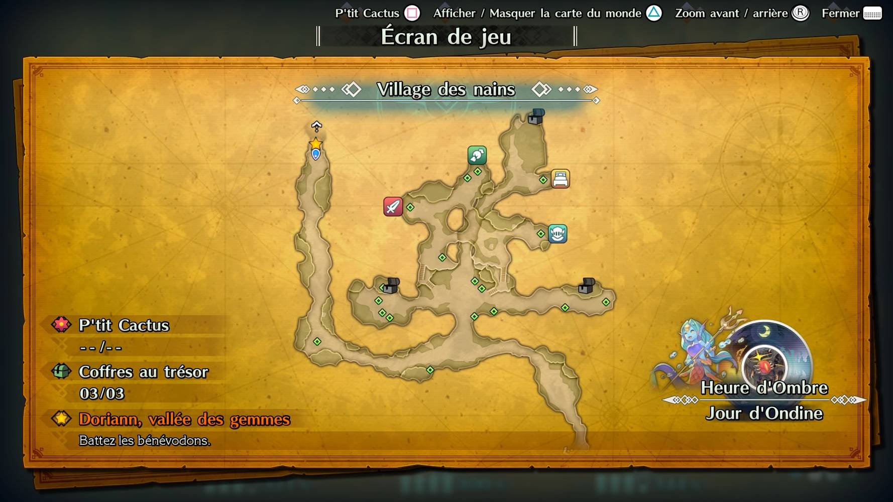 - L’homme vous parle d’un cactus. P’tit Cactus se trouve au centre de la zone, à l’est de l’idole de mana argentée, vous ne pouvez pas le louper, c’est automatique dans l’histoire.