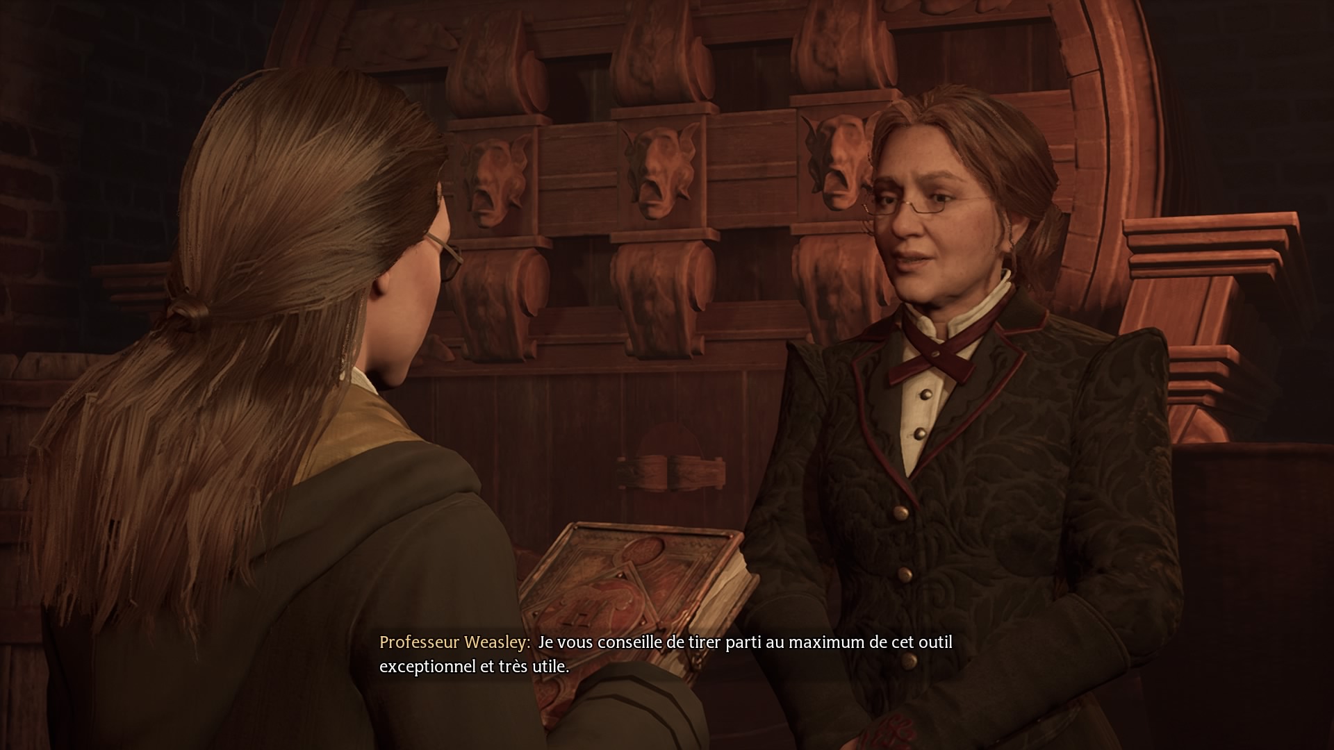 Bienvenue à PoudlardSortez de votre chambre. Vous pouvez fouiller une autre chambre pour trouver un coffre (argent), utilisez Revelio pour le trouver facilement. Descendez l’escalier et présentez-vous aux trois compagnons, dans la salle commune de votre maison. Après, retrouvez le professeur Weasley devant l’entrée la salle, qui vous remet le Guide du Sorcier. Ensuite, suivez-la et lancez Revelio pour révéler une page du guide du sorcier (celle obtenue dépend de la maison, ici, c'est Livre de recettes des elfes de maison). Cela débloque un défi du guide du sorcier. Suivez les instructions pour comprendre l’usage de votre livre qui fait office de menu principal du jeu et répertorie tout. Continuez à la suivre pour qu’elle vous explique le déplacement rapide par flamme de Cheminette. Ouvrez la carte et choisissez le Hall central. Parlez à présent au professeur Fig et ouvrez votre carte pour un tutoriel sur les quêtes. Vous avez deux quêtes principales disponibles, suivez celle que vous voulez, le descriptif des deux sont les deux prochains paragraphes. Vous débloquez la boussole ensorcelée. Vous obtenez deux quêtes principales. Avant de vous lancer, approchez de Léonora pour la quête annexe 1. Et la lumière fut. Il est possible de récupérer des pages du guide du sorcier. Vous pouvez visiter la zone, mais pour plus de clarté, une page consacrée à l’exploration lui est consacrée. Cours de défense contre les forces du malLa salle du professeur Hecat se situe dans l’aile d’astronomie. Une fois dans la classe, après la cinématique, vous apprenez le sort Levioso. Il faut s’en servir pour briser les boucliers jaunes. Après l’explication avec le mannequin, gagnez le duel contre Sebastian Pallow. Après, parlez-lui pour qu’il vous parle d’un club clandestin, débloquant la quête annexe 2. Joutes magiques : Manche 1. Vous obtenez 260 EXP. Cours de sortilègesRendez-vous dans la salle du professeur Ronen dans l’aile d’astronomie. Après la cinématique, vous apprenez le sort Accio. Une fois dehors, un mini-jeu propose d’attirer une sphère le plus proche du bord avec le sort, sans la faire tomber. L’astuce est de relâcher la sphère juste au bord de l’entrée de la zone verte, à la fin de la zone orange. Après l’entrainement, vous faites deux duels, le dernier avec des obstacles, tout est question de timing. Parlez au professeur Ronen pour conclure cette quête. Vous obtenez 260 EXP. Info : ce sort permet d’attraper les pages volantes à Poudlard. Vous débloquez une quête annexe 3. Des livres pour décoller. L’après-cours de WeasleyRetrouvez le professeur Weasley dans sa classe près de la cour de métamorphose. Choisissez le camarade qui vous accompagnera. Vous devez ensuite faire votre premier devoir avec le professeur Ronen, afin de pouvoir poursuivre l’histoire principale. En mettant la carte, vous remarquez une nouvelle quête annexe 4. Bave de Bavboules. Bienvenue à Pré-au-LardPré-requis : niveau 2 et le sort Reparo Retrouvez le camarade choisi près de l’entrée de Poudlard. Comme vous ne pouvez pas vous balader à loisir, restez près de votre guide. Vous traversez l’enceinte de Poudlard et suivez le chemin menant à votre destination. En cours de route, un arrêt se fait où vous pouvez récupérer des chrysopes. Suivez-la jusqu’à atteindre Pré-au-Lard. Après la petite discussion, vous êtes libre d’explorer les lieux comme bon vous semble. Faites un tour à la boutique Tomes et parchemins (à l’entrée) pour récupérer créasort de table de rempotage munie d’un petit pot et créasort de petit poste de potions. Partez au nord ensuite, pour la boutique Ollivander, afin de créer votre propre baguette (utilisez la clochette pour lancer la scène). Sortez et rendez-vous au nord-ouest pour trouver l’apothicaire dans Potions Pippin. Récupérez la recette de potion édurus et la recette de potion wiggenweld. Ensuite, récupérer les Graine de dictame au Navet magique de l’autre côté de la rivière, au nord-ouest. Une fois les emplettes terminées, rejoignez votre camarade au centre-ville. Après la scène, vous affrontez un troll en armure. Face à lui, vu son amplitude de frappe, combattez à bonne distance pour balancer quelques lancers de base. Quand il fonce vers vous ou vous attaque, utilisez la touche (rond) pour esquiver. Ensuite, il sera proposé de lui lancer des objets du décor avec la magie ancienne, en les attrapant avec la touche indiquée (R1). Affaiblissez-le avec tout ce qui vous tombe sous la baguette et à la fin, vous l’achevez avec votre magie ancienne (L1 + R1). Après le combat, il faut remettre de l’ordre en utilisant le sort Reparo sur les sept tas de débris. Ensuite, entrez dans le magasin du commerçant Augustus Hill et parlez-lui. Prenez la tenue d’élève traditionnelle offerte pour obtenir un tutoriel sur les équipements. Après les dialogues, sortez et suivez votre camarade. Une longue cinématique s’enclenche après quelques pas. Allez dehors discuter avec votre escorte. Vous devez retourner dans votre salle commune pour la nuit (voyagez depuis la carte). Vous obtenez lancer de magie ancienne et magie ancienne ainsi que 260 EXP. Ceci termine ce chapitre.