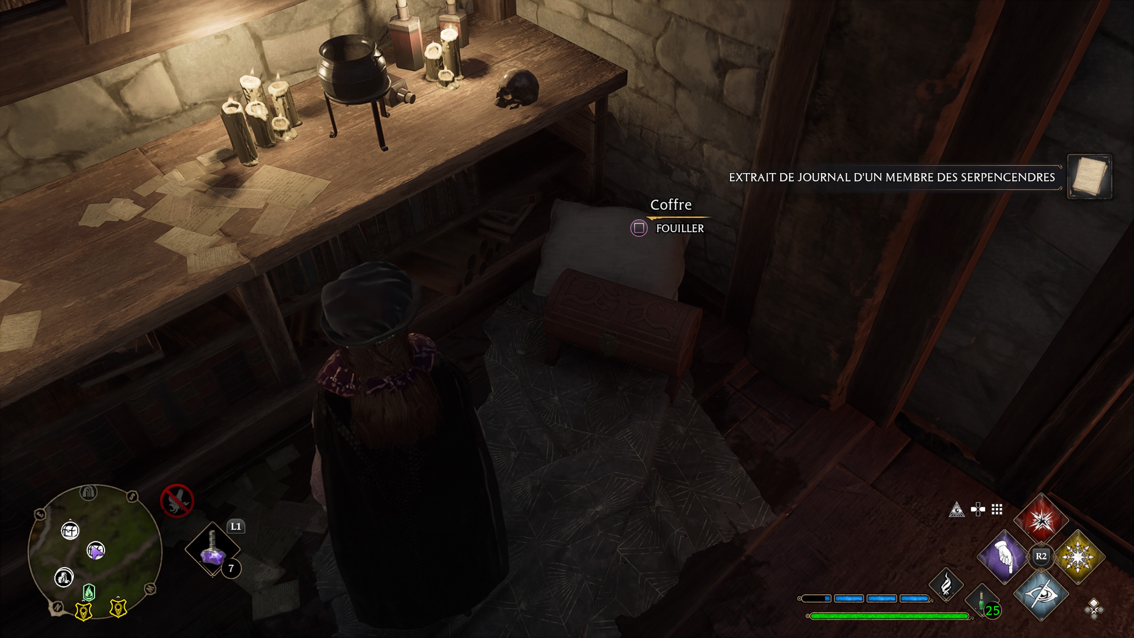 En contrebas du kiosque du manoir de l'Ouest de la pointe du manoir, où il faut utiliser Accio sur l'anneau pour ouvrir le passage, et ensuite à l'intérieur sur les anneaux révélés avec Revelio