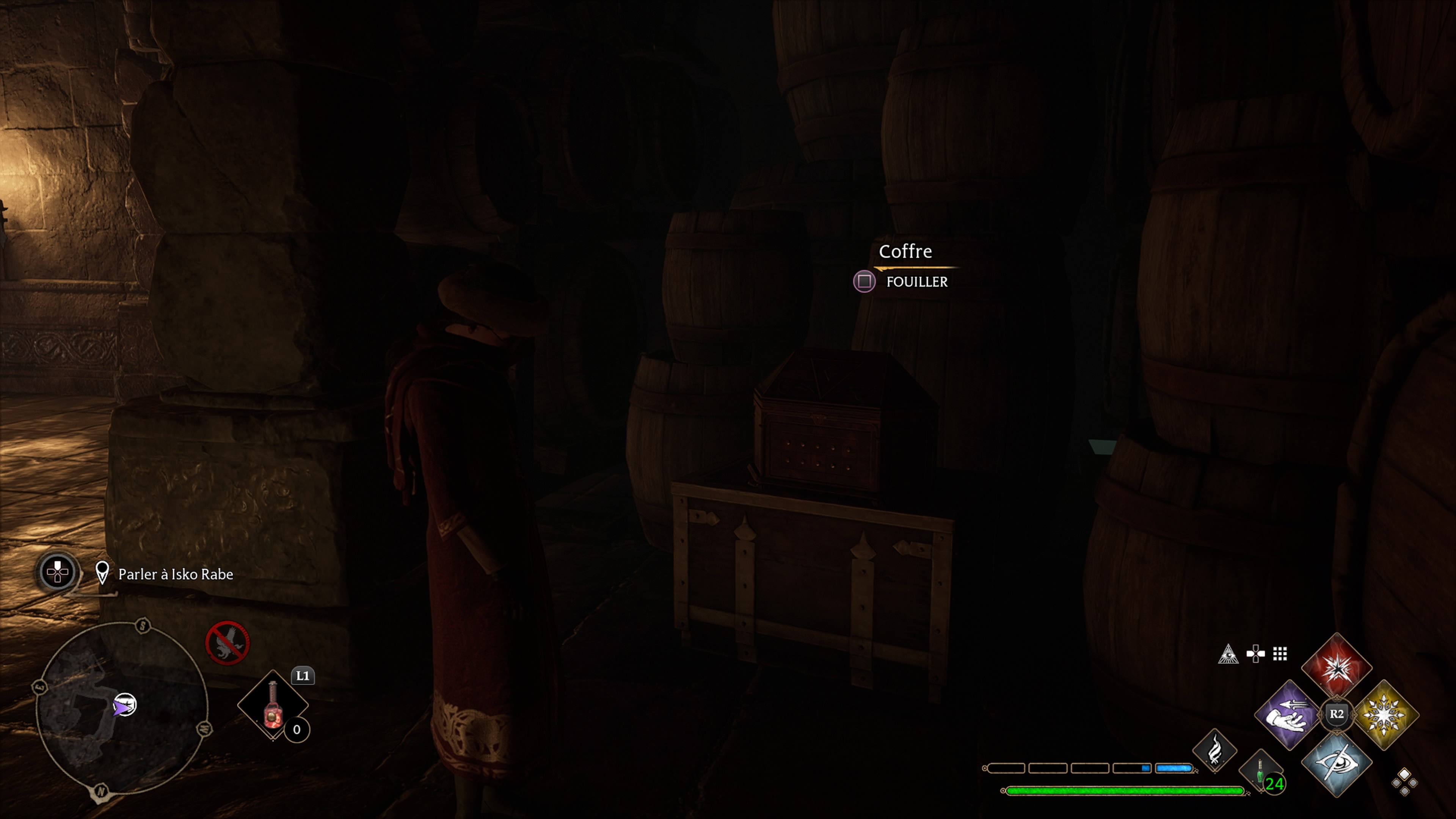 Partie basse de Hight Street : allez au dernier étage de l'auberge Les Trois Balais pour ouvrir la porte verrouillée (nv1) et juste au centre de la pièce |
