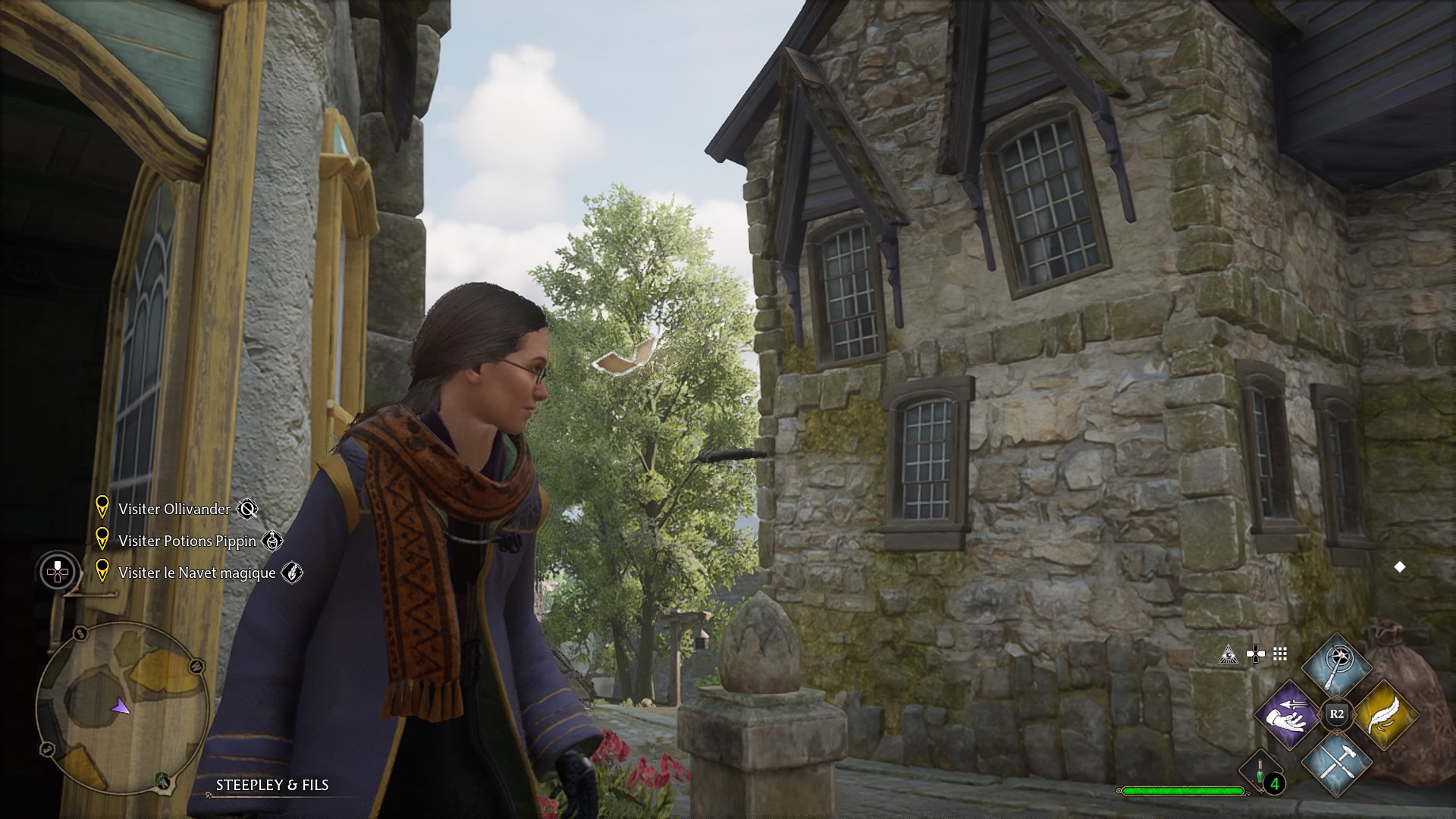 Grand-place de Pré-au-Lard : elle vole autour de la boutique de thé Steepley & fils