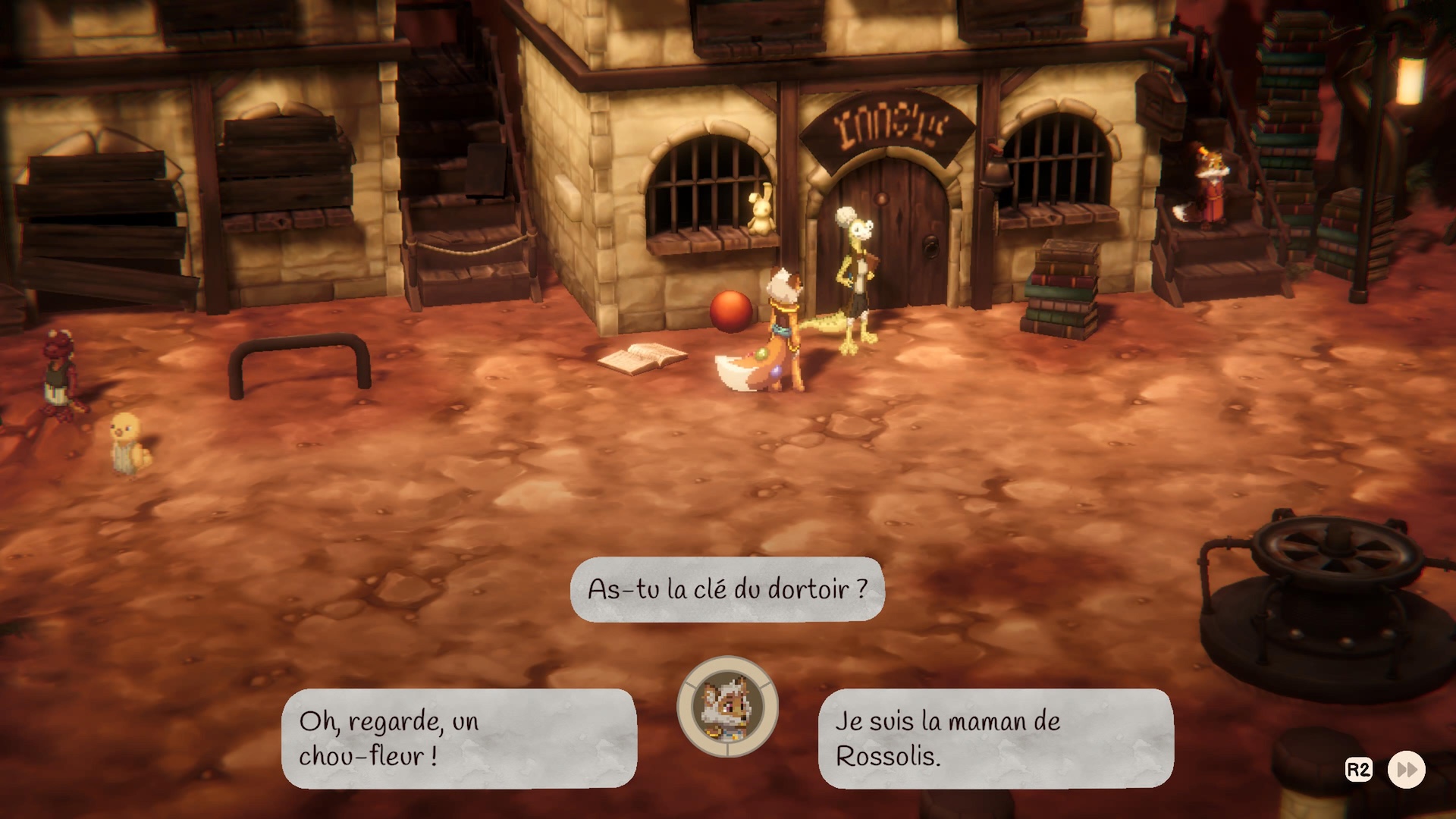 Chapitre 5 - Discutez avec Rossolis et les autres enfants pour obtenir la quête L'esprit dégoûtant du dortoir. Allez parler à leur maîtresse, Nyef, juste un peu plus loin. Ici, vous pouvez essayer les différents choix de discussion pour des petites scènes rigolotes, mais pour obtenir la clé du dortoir, il vous suffira de le lui demander directement. Allez à droite et approchez-vous de l'enfant qui se trouve dans l'escalier, il vous demandera de le suivre pour atteindre le dortoir, dans lequel vous pouvez combattre l'Esprit Terrifiant (niveau 6). Celui-ci n'a rien de compliqué, une attaque à cible unique devrait avoir raison de lui en un coup si vous avez pris quelques niveaux. En le vainquant, vous obtenez de la Poudre de morve et des Vêtements (ces derniers servent pour la quête Voleur de pudeur). Quittez la pièce et retournez voir Rossolis pour valider la quête et obtenir une page de guide (15-16) qui est en fait une carte au trésor.