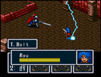 Après avoir nommé votre personnage (Ryu par défaut) et avoir réglé les paramètres, suivez les scènes d’introduction du jeu. Vous prenez le contrôle de Ryu dans une maison en flammes. Fouillez la commode à droite pour recevoir V.Ptn. Allez à gauche et descendez les marches. En bas, parlez un peu à tout le monde, et notamment à la femme de gauche devant la porte. Cela vous permet de parler à sa voisine, ce qui déclenchera la suite. Après les différentes scènes, ouvrez le coffre pour obtenir 300GP. Dans le village, vous pouvez dépenser cet argent, notamment en faisant des stocks de potions et d’antidote. Il n’est pas vraiment utile d’acheter des équipements pour le moment. Sauvegardez à la la statue du dragon et sortez du village.