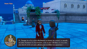 Avancez pour entrer dans la ville et parlez à l’homme masqué portant un habit rouge : il vous donnera le livre Jolis riens (image). Brisez les jarres non loin de là pour obtenir de l’Eau fraîche. Explorez ensuite le jardin de la grande demeure située sur la gauche. Vous y trouverez un coffre contenant un brin de Charmélia, un Bandage crasseux dans un tonneau, et une Fleur de soie au sol sur le côté de la maison. Entrez ensuite dans le magasin d’objets pour trouver un Écheveau céleste à l’étage. Montez les marches sur le côté de l’église pour trouver un coffre (Graine de Thérapicité). Descendez la rue menant à la plage et tournez à droite derrière l’église jusqu’à trouver un tonneau (Poussière de verre). Revenez sur vos pas et descendez sur la plage, sur laquelle vous trouverez du Corail rouge au sol. Traversez la plage vers l’ouest afin d’obtenir un Écrin de nacre. Montez ensuite les marches au nord pour entrer à l’auberge. Si vous passez la nuit ici, vous recevrez en récompense une Mini médaille. Vous y trouverez notamment un comptoir d’échange pour vos Mini médailles. La réceptionniste vous tend d’ailleurs votre Album de médailles. Vous trouverez également un Oeil vert, ainsi qu’une Mini médaille à l’étage. Sortez sur le balcon pour trouver 1300 pièces d’or. Vers l’armurerie, vous trouverez encore quelques objets : une Pimenboise dans un tonneau, une Panacée dans la petite pièce accolée à l’église, une Finessence sur le balcon de l’armurerie. Enfin, visitez l’auberge située à côté pour trouver une Tenue de voyageur dans l’armoire à l’étage, une Aile de chimère et 75 pièces d’or sur le balcon. Deux quêtes sont par ailleurs disponibles dans la ville, et réalisables dès maintenant. N’oubliez pas non plus de terminer la quête d’Akia à Gondolia. Vous pouvez également vous amuser au casino si cela vous chante (Ticket de tombola).