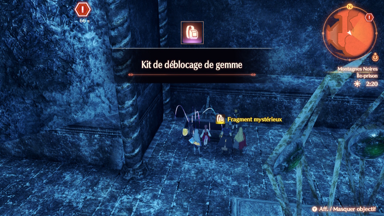 Quêtes : Mécanos au fourneau MU : D'nari des brumes, Godwin le radical, Muramasa le ténébreux, Naberius l'invincible, Fitzpatrick le substitut, Jéhan des brumes, Hazerune le galopant, Alcar le dieu dragon Reliques : Désolation de Ragmos - Terrasse royale, Désolation de Ragmos - Garnison de Gelgemos, Désolation de Ragmos - Route de Miguel, Montagnes noires - Ruines de Befalgar, Montagnes Noires - Ancienne cathédrale d'Argan, Montagnes noires - Trône d'albâtre, Montagnes Noires - Sanctuaire des trois sages Conteneur : Gorges d'Aurora - Temple profané d’Abitalia |
