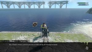 Parlez au vieux pêcheur près des docks et de la petite plage, suite à l'accomplissement de la quête précédente.